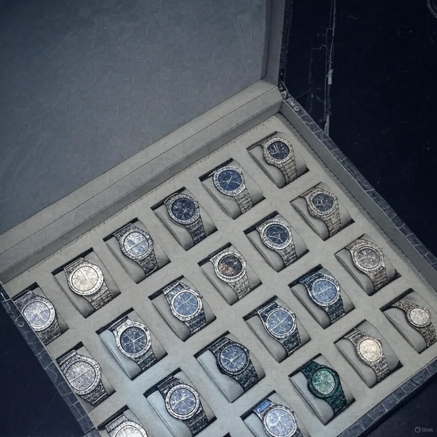 Luxury Black Watch with Stone-Studded Black Dial & Original Rolex Box