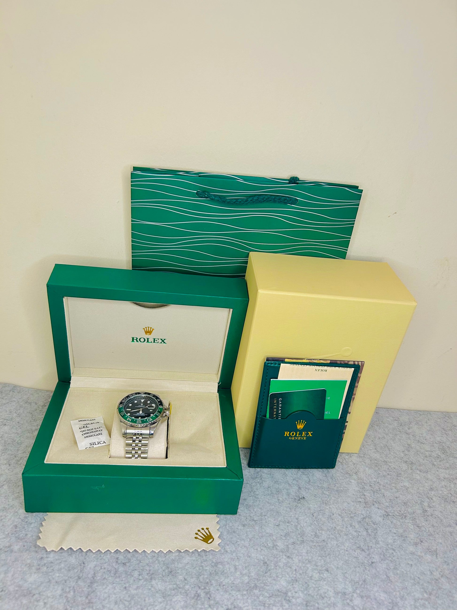 Blue-Black Submariner Dial Watch with Silver Chain & Original Rolex Box