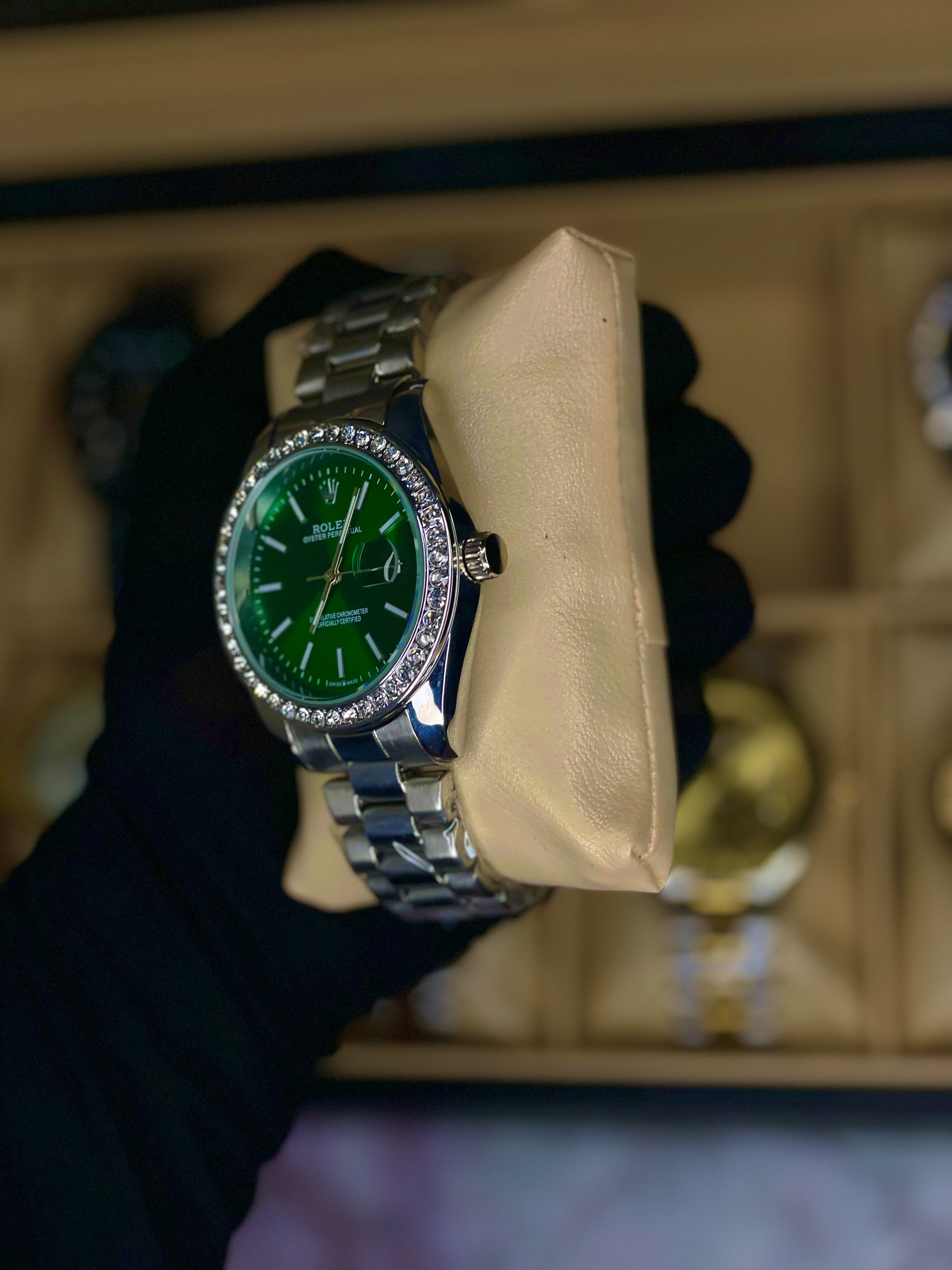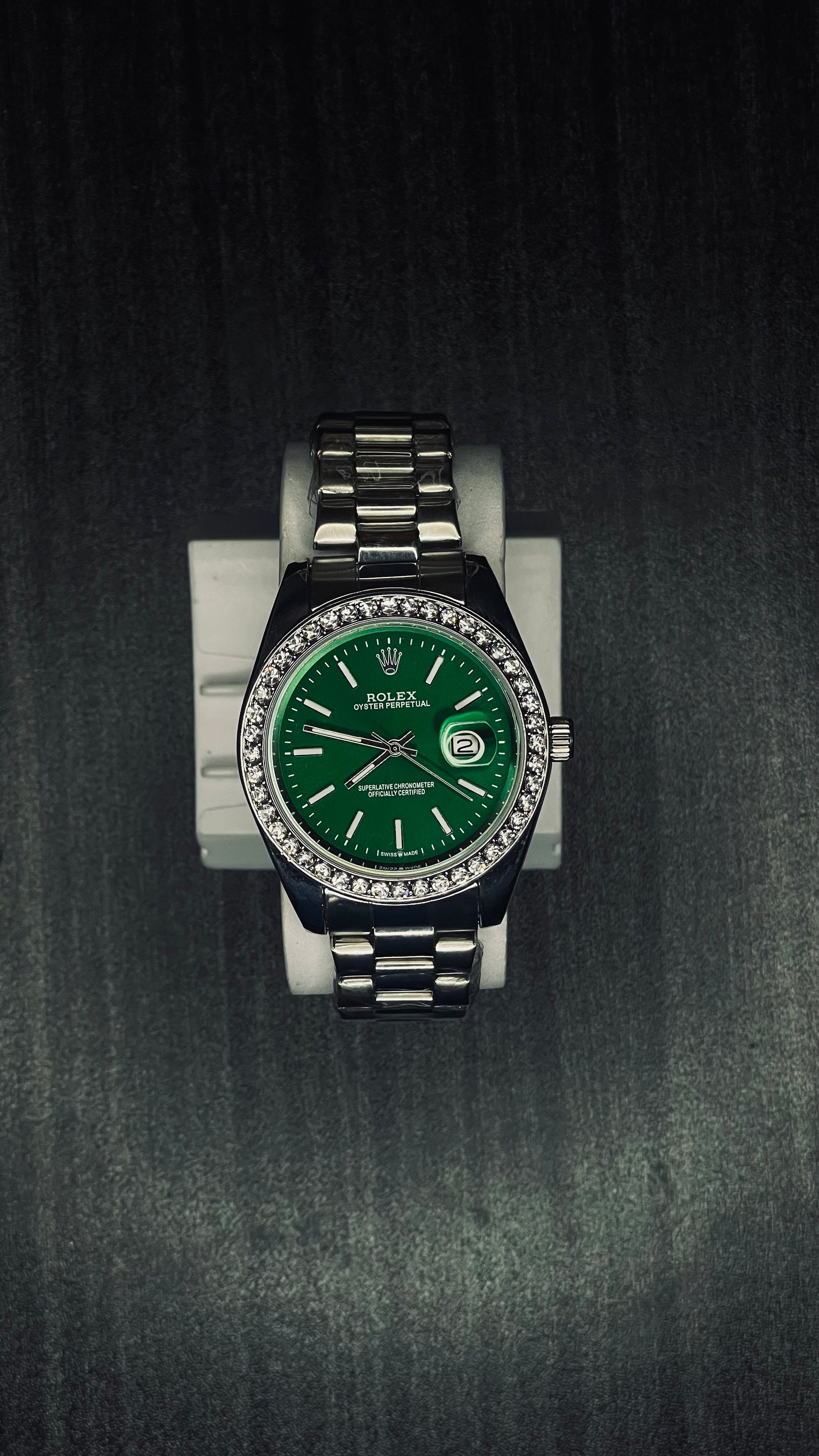Eye-catching green dial luxury watch with stainless steel band
