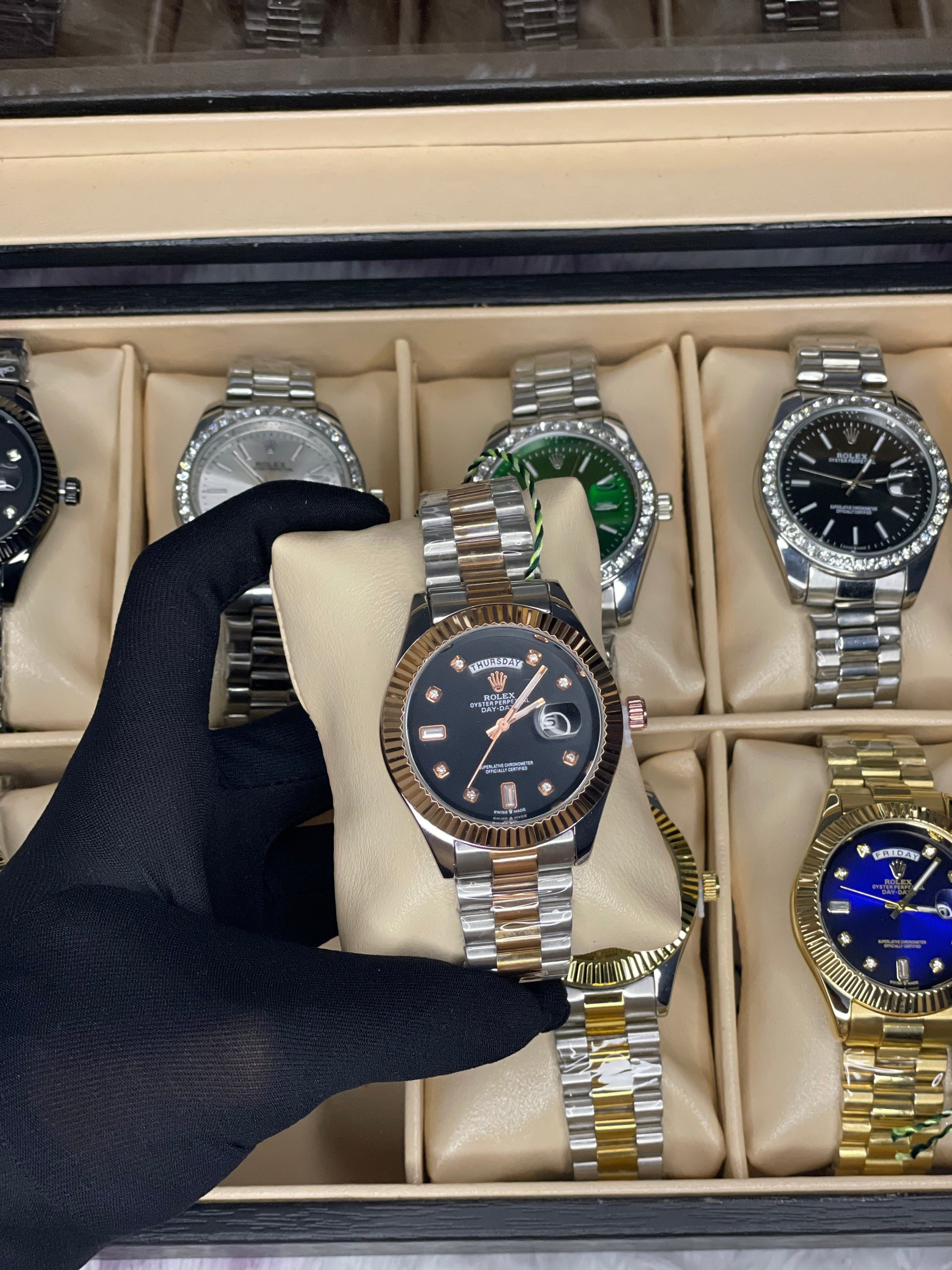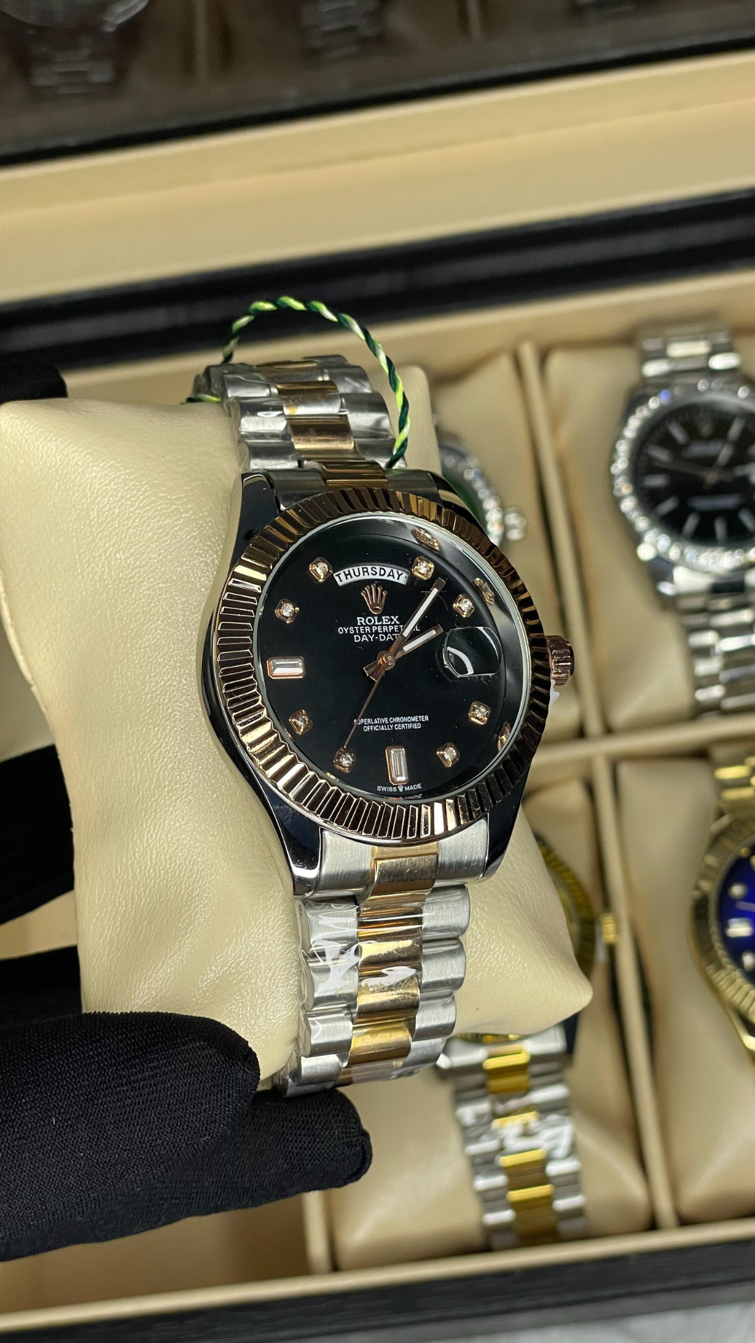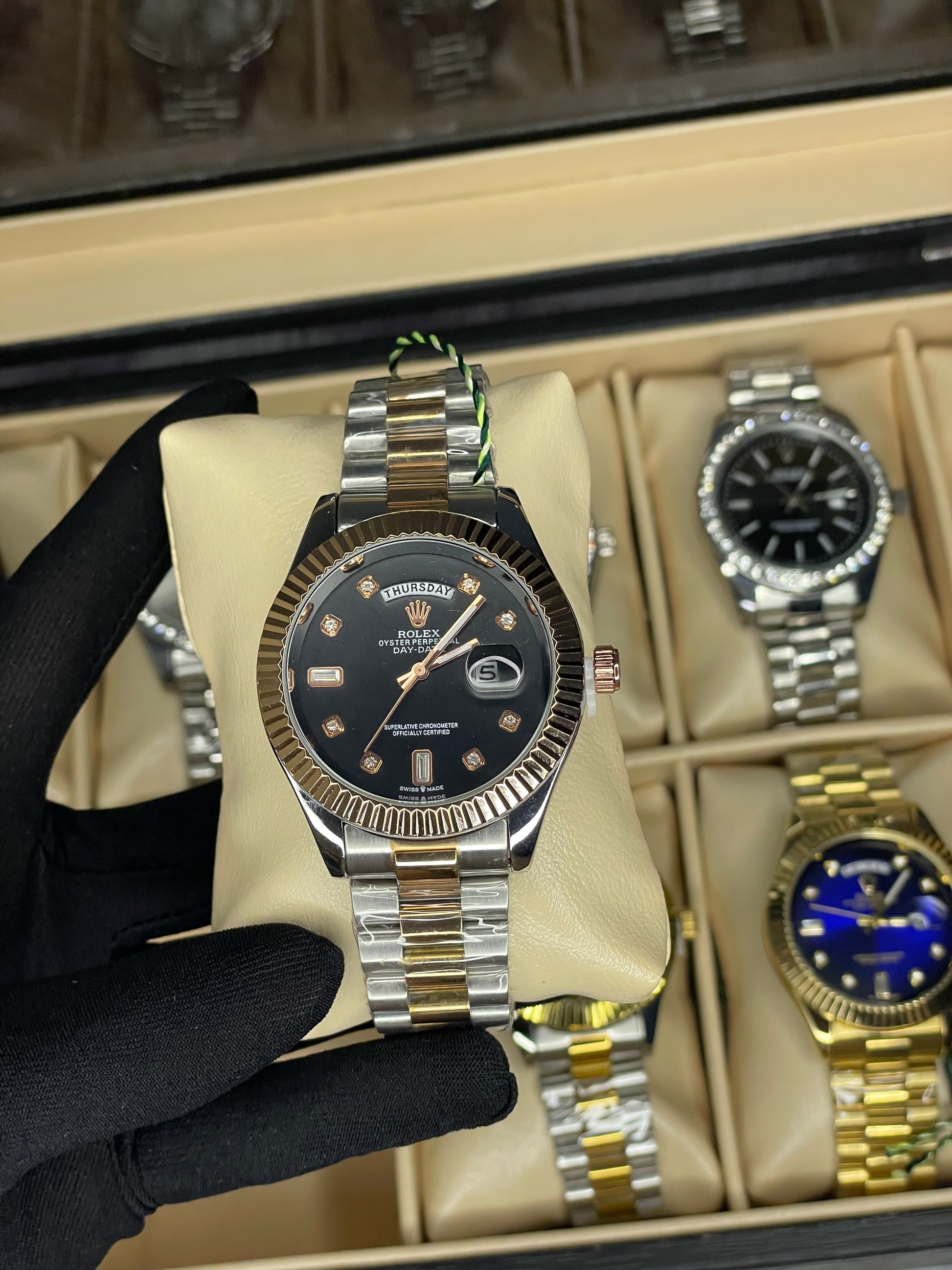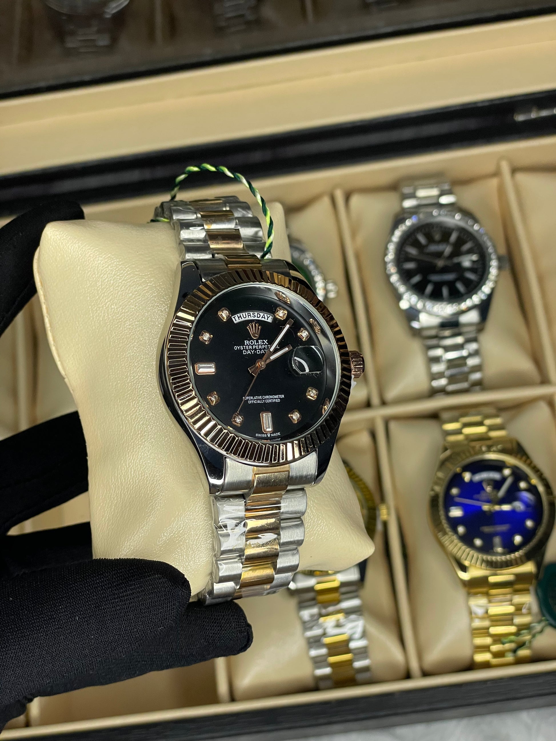 Eye-catching green dial luxury watch with stainless steel band
